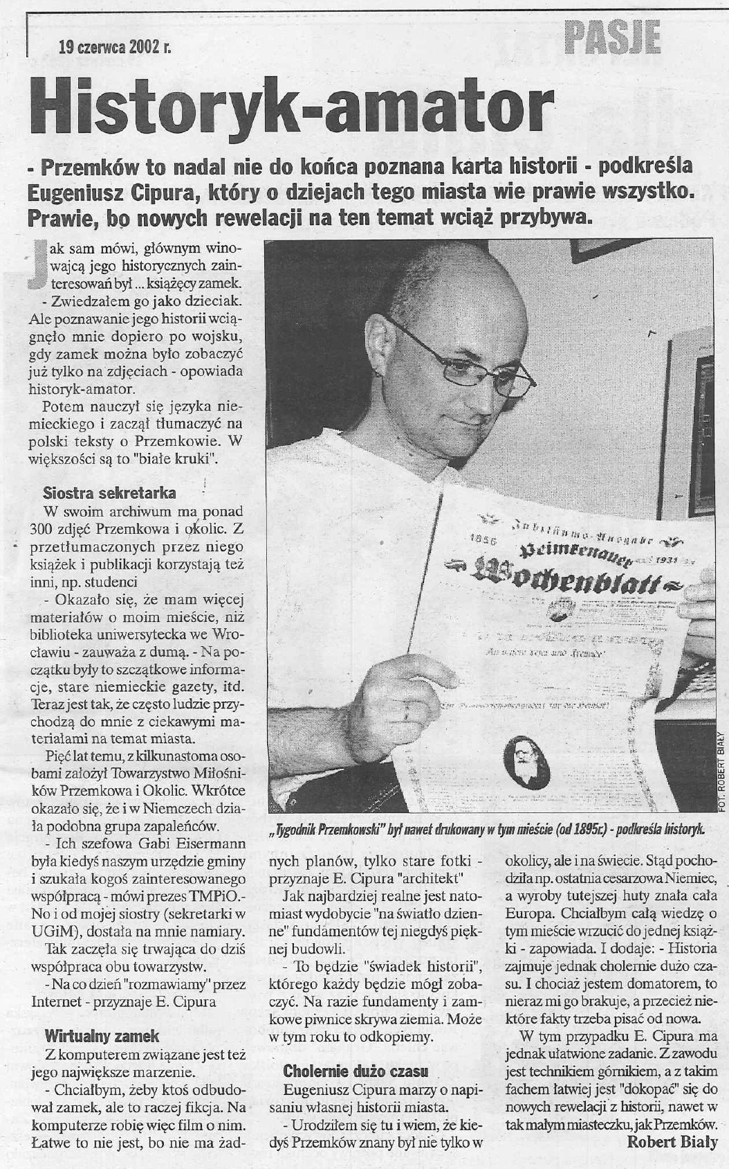 W tym przypadku E. Cipura ma jednak ułatwione zadanie. Z zawodu jest technikiem górnikiem, a z takim fachem łatwiej jest "dokopać" się do nowych rewelacji z historii, nawet w tak małym miasteczku, jak Przemków.